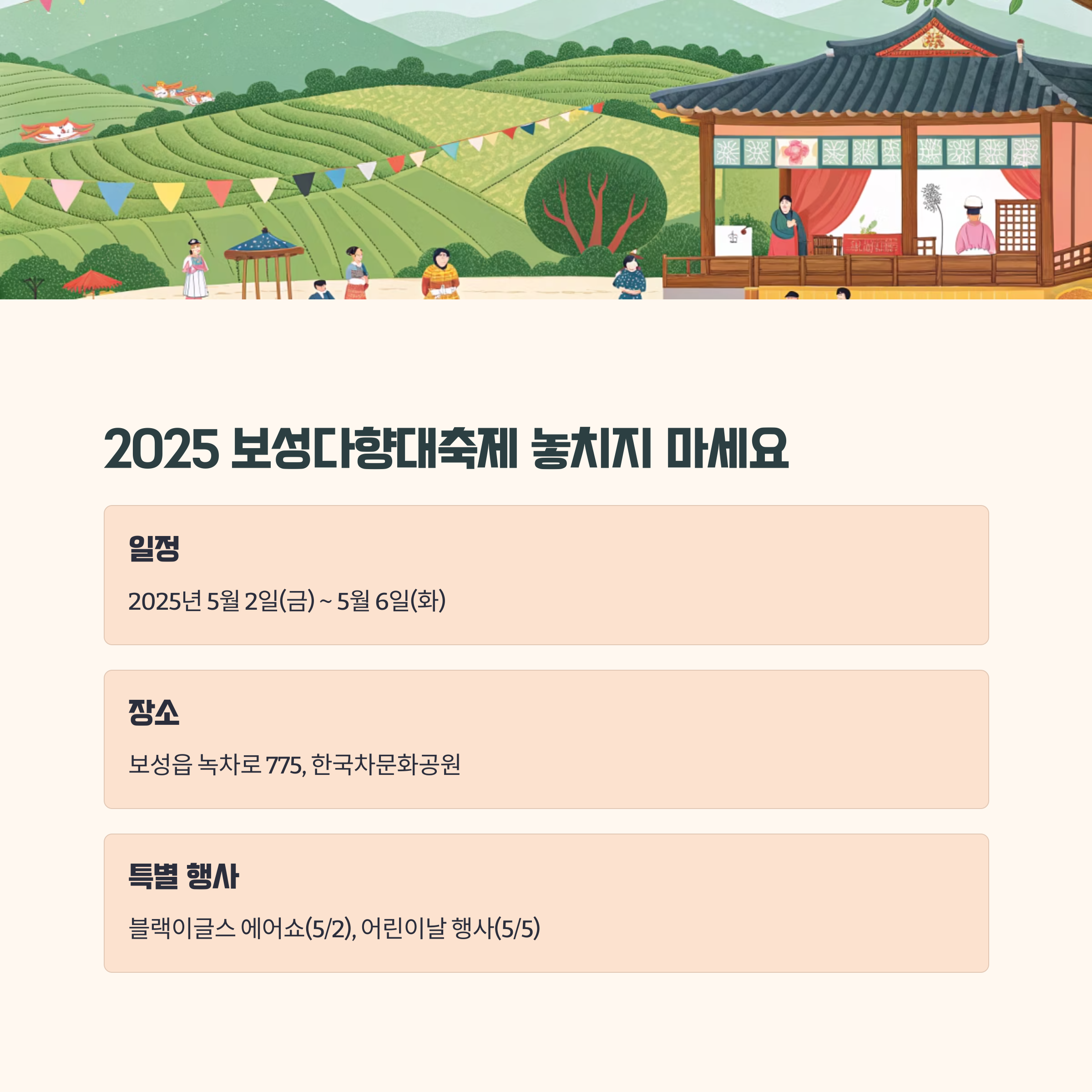 이번 글에서는 2025년 최신 정보를 바탕으로 보성 녹차밭의 산책 코스와 다향대축제에서 절대 놓쳐선 안 될 꿀팁들을 정리해봤어요.