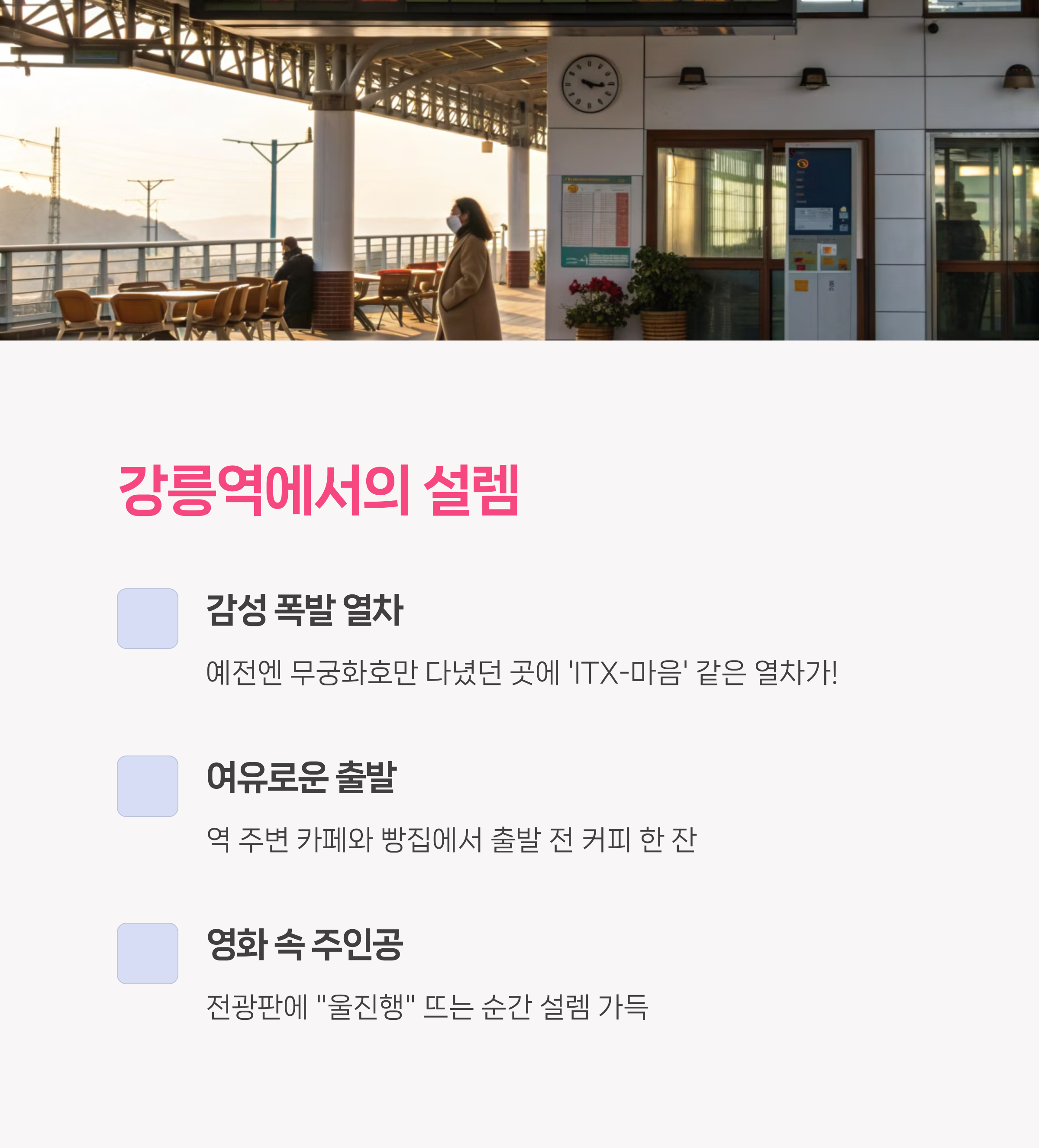 진짜 아무 계획 없이 강릉역에서 ‘ITX-마음’ 딱 타봤어요.
