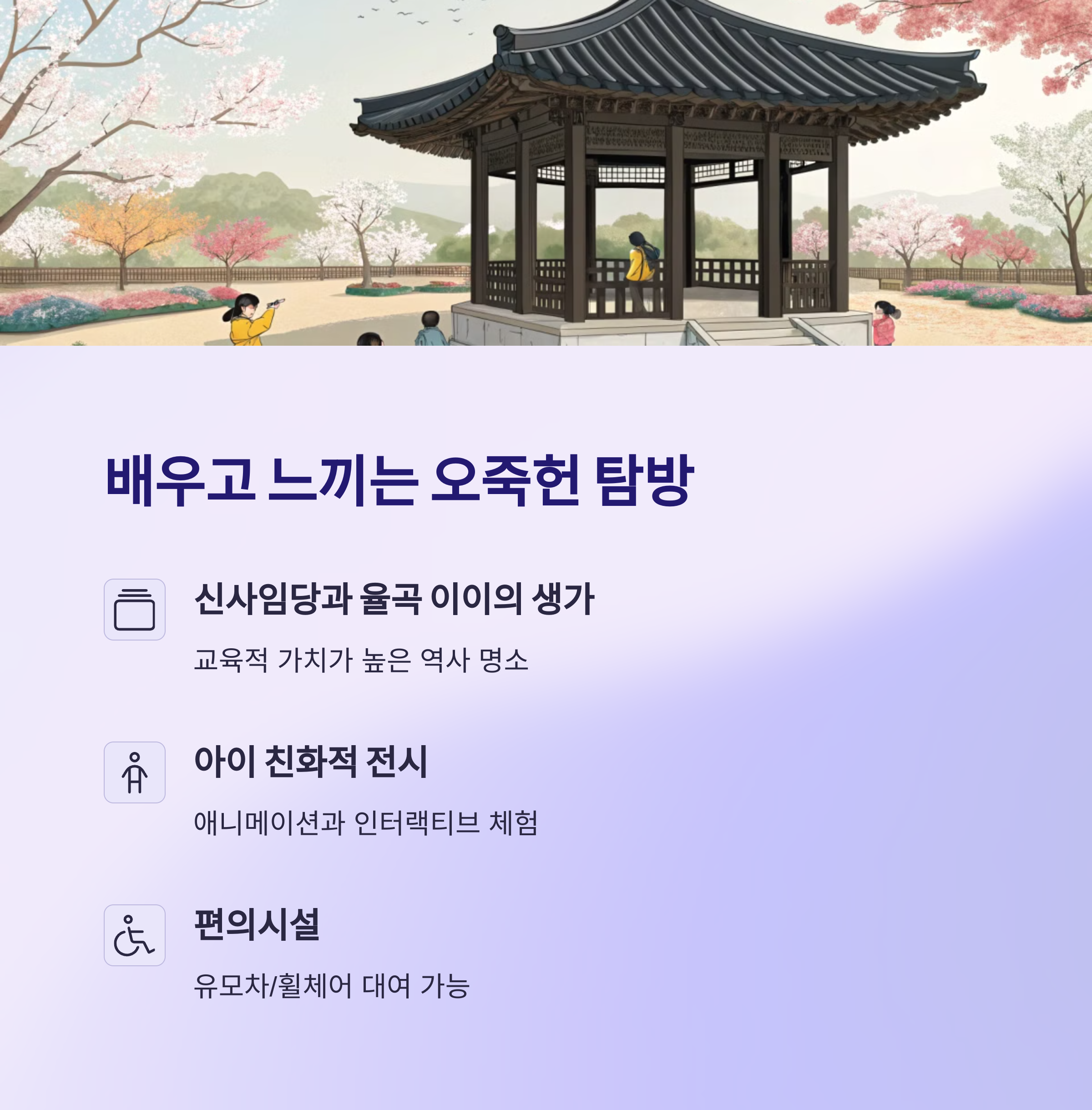 역사와 문화에 관심 있는 가족이라면 오죽헌을 추천해요.