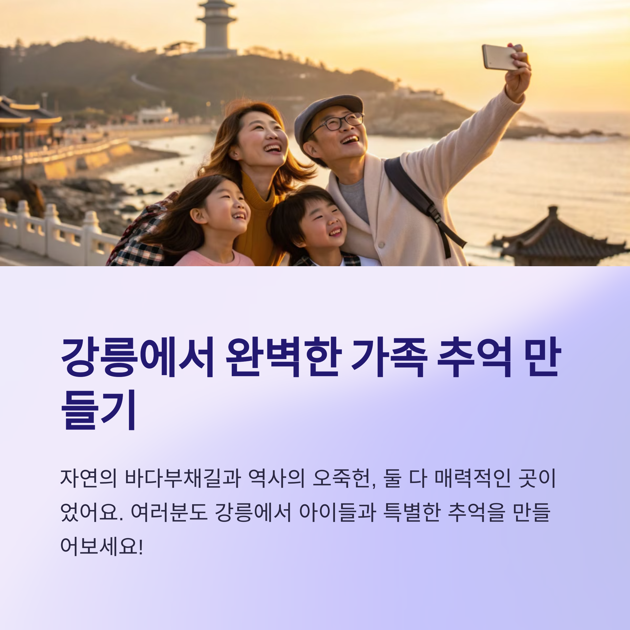 여러분도 이번 가족여행에서는 강릉의 멋진 풍경과 교육적 체험을 동시에 즐겨보세요.