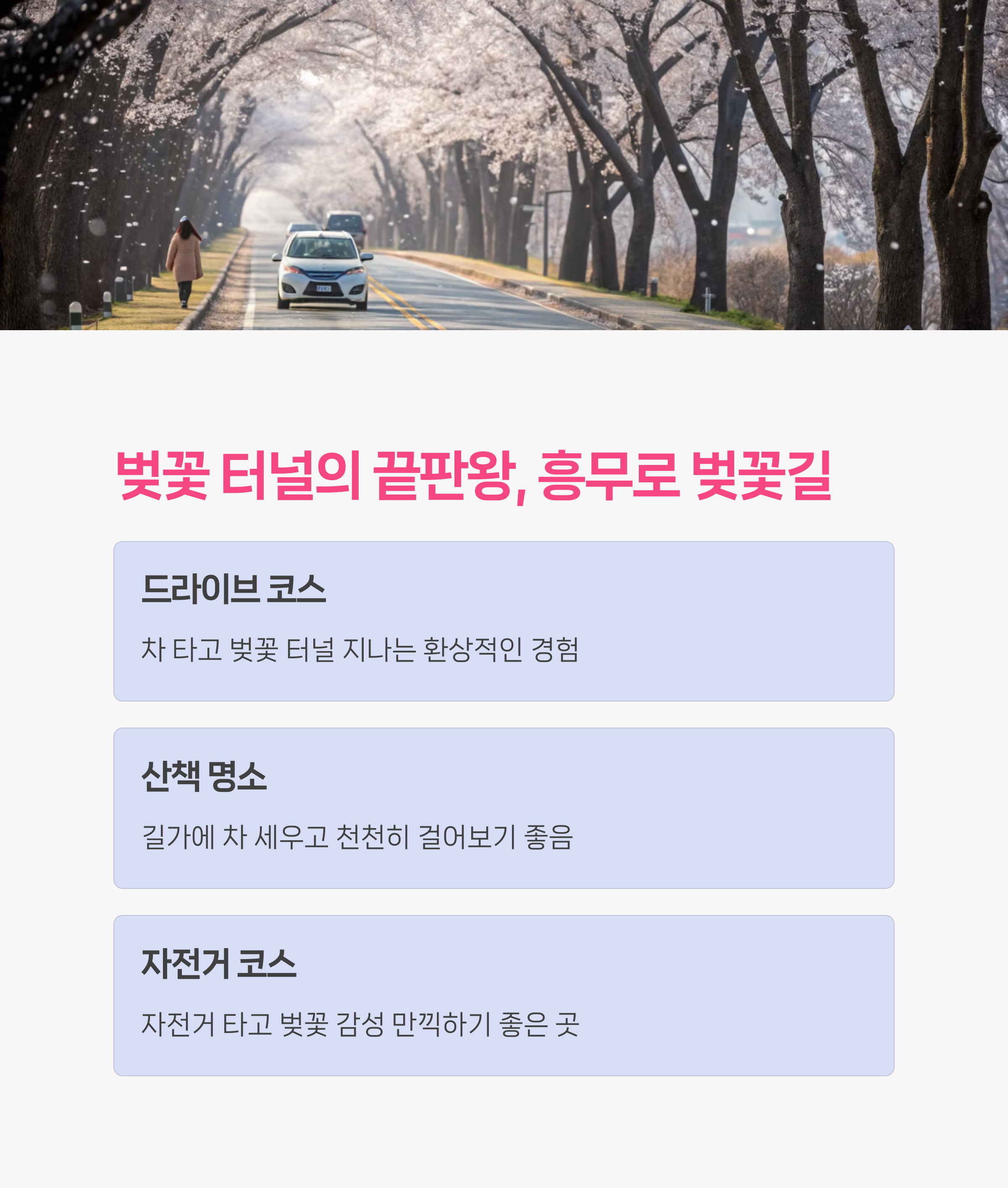 자동차 타고 벚꽃 아래를 지나가고 싶다면?! 무조건 흥무로!!!