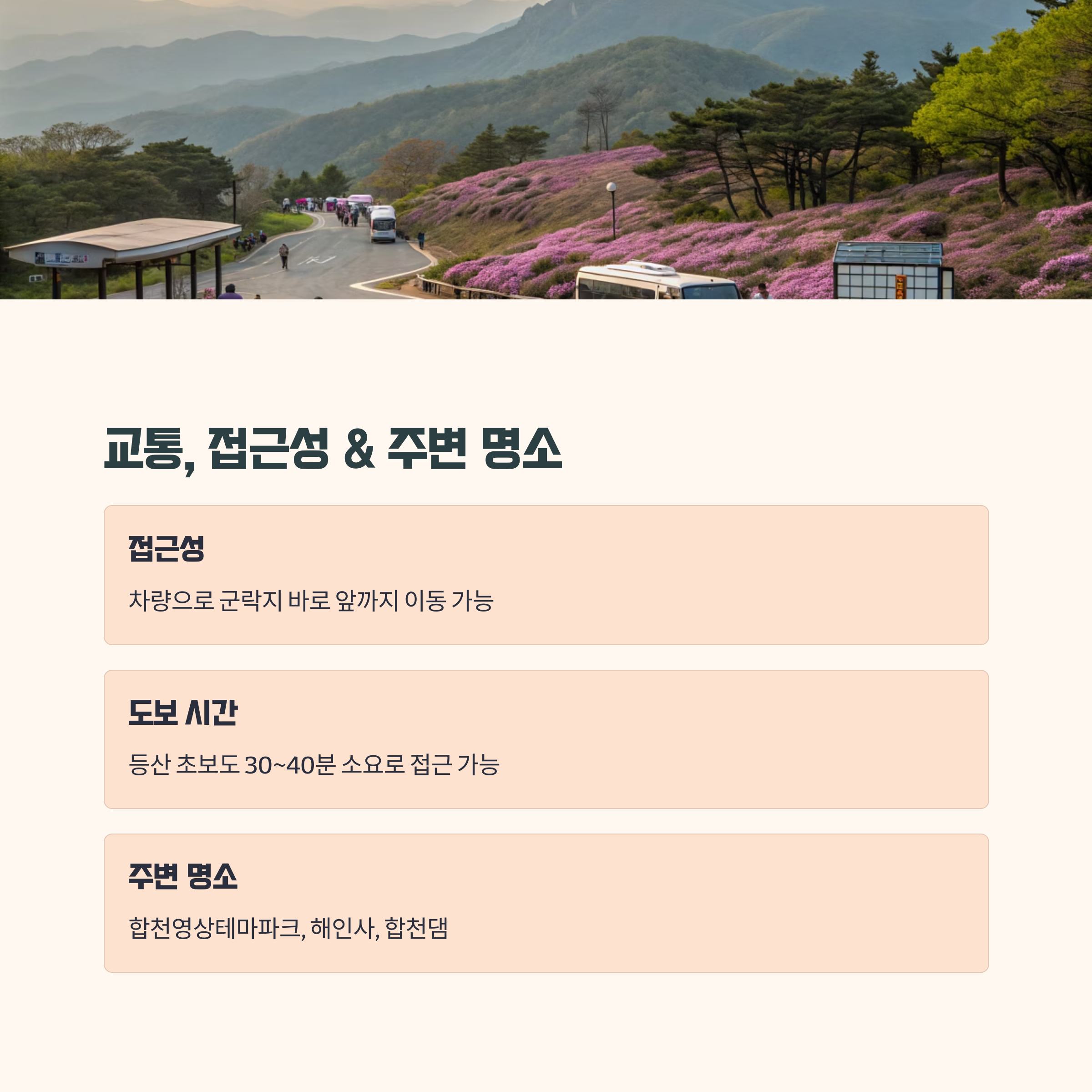 • 겉옷 챙기기: 해발 고도 높은 황매산, 바람이 꽤 차가울 수 있어요.