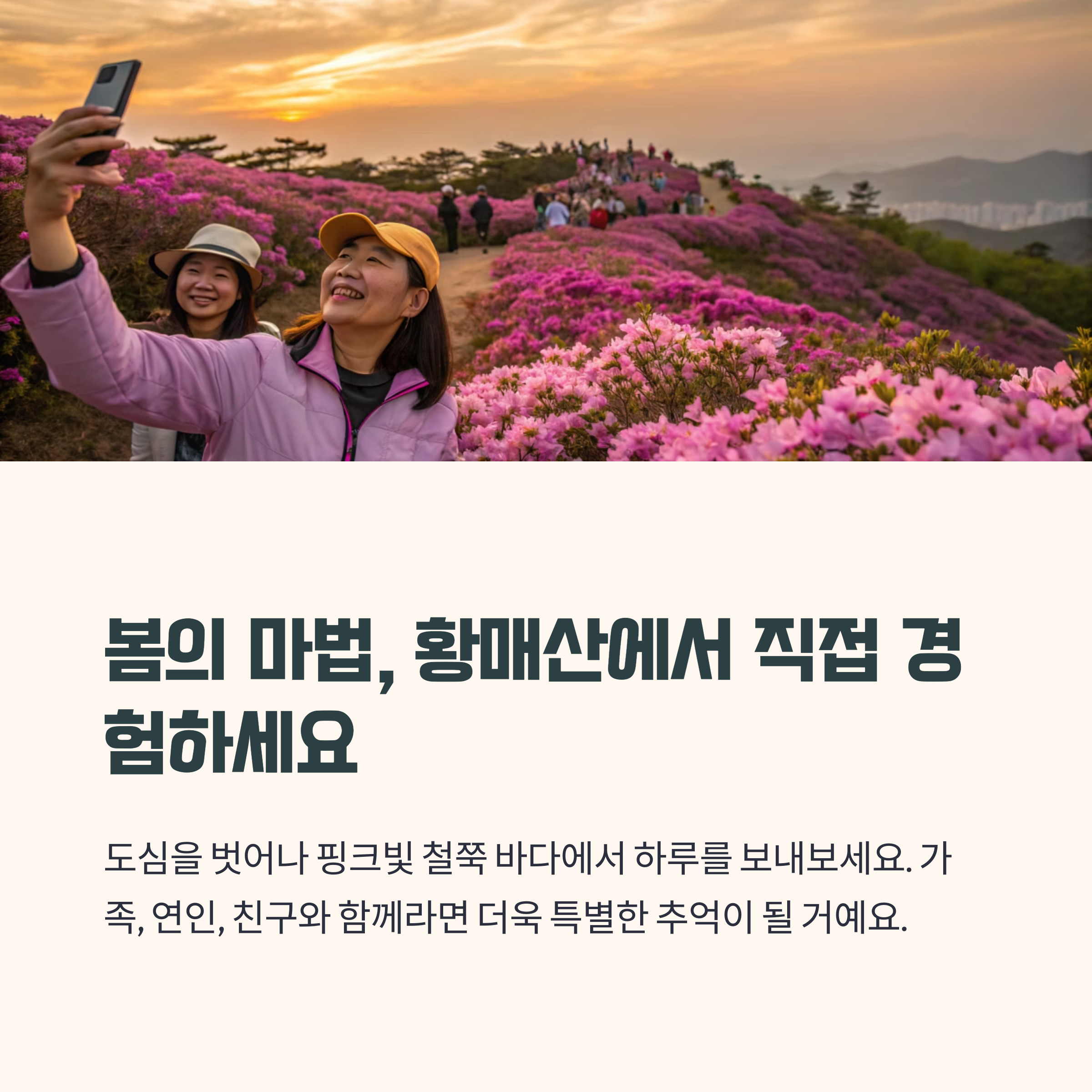 도심에서 벗어나 자연 속에서 봄을 온몸으로 느끼고 싶다면, 황매산 철쭉축제만큼 완벽한 선택은 없을 거예요.