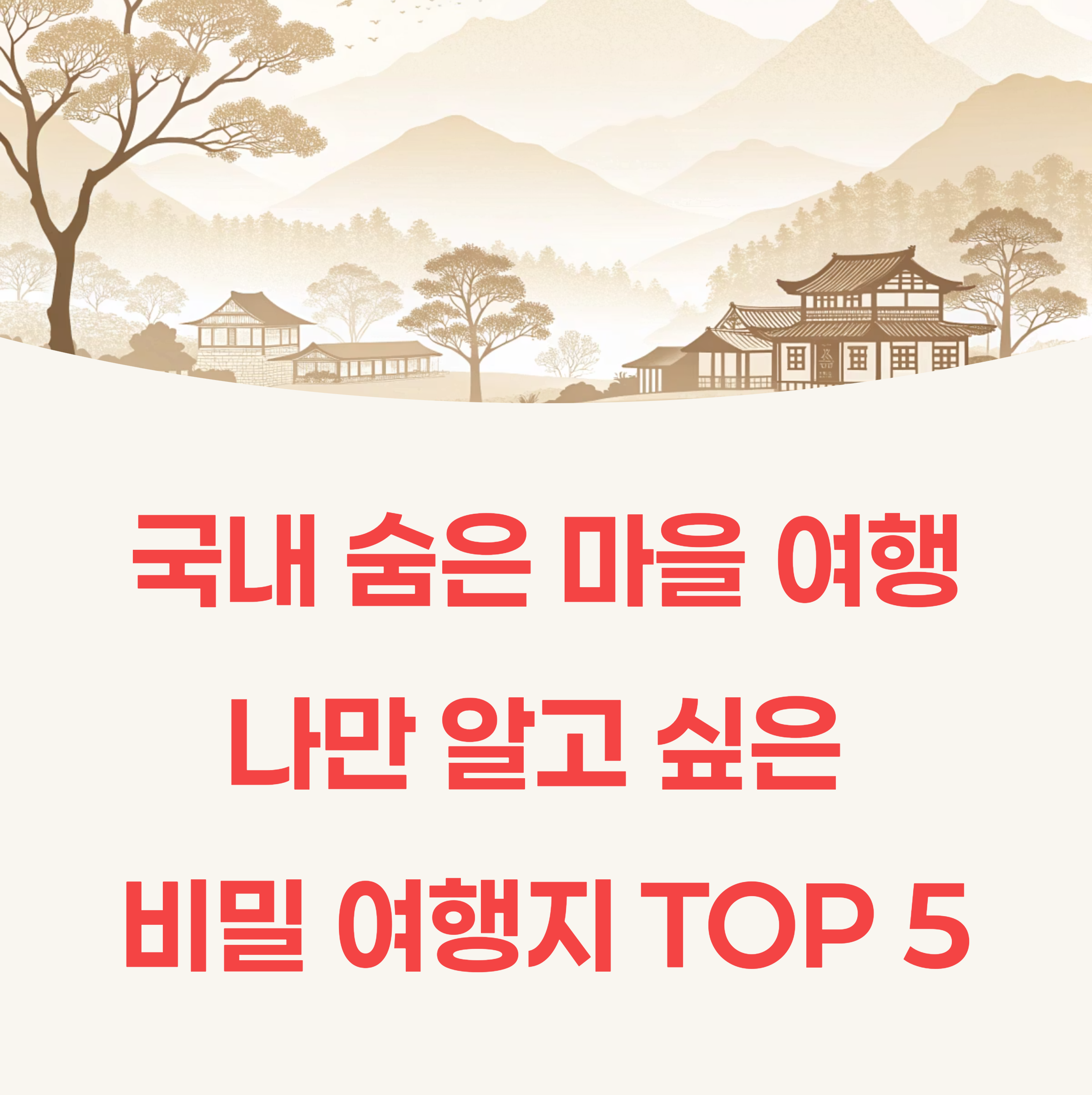 오늘은 2025년 최신 데이터와 SNS 언급량, 예약률 지표를 바탕으로 ‘국내 숨은 마을 여행지 TOP 5’를 정리했어요.