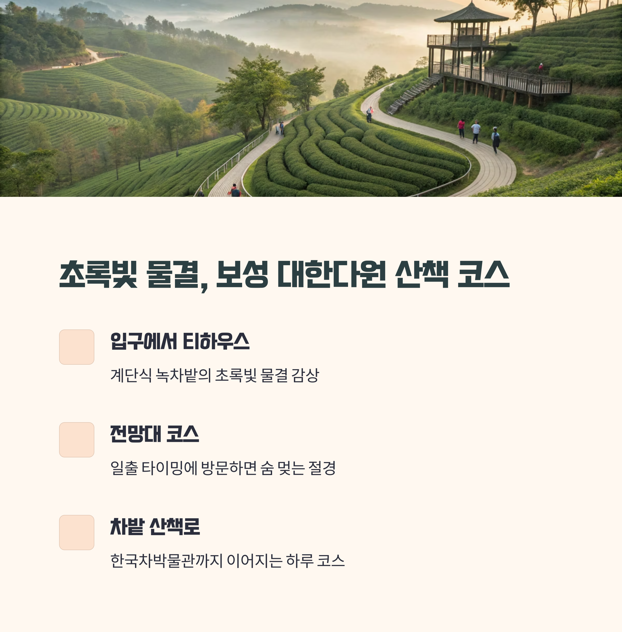 보성은 녹차밭만 보고 떠나기엔 아까운 곳이에요. 근처에 소박하지만 알차게 힐링할 수 있는 명소들이 많거든요.