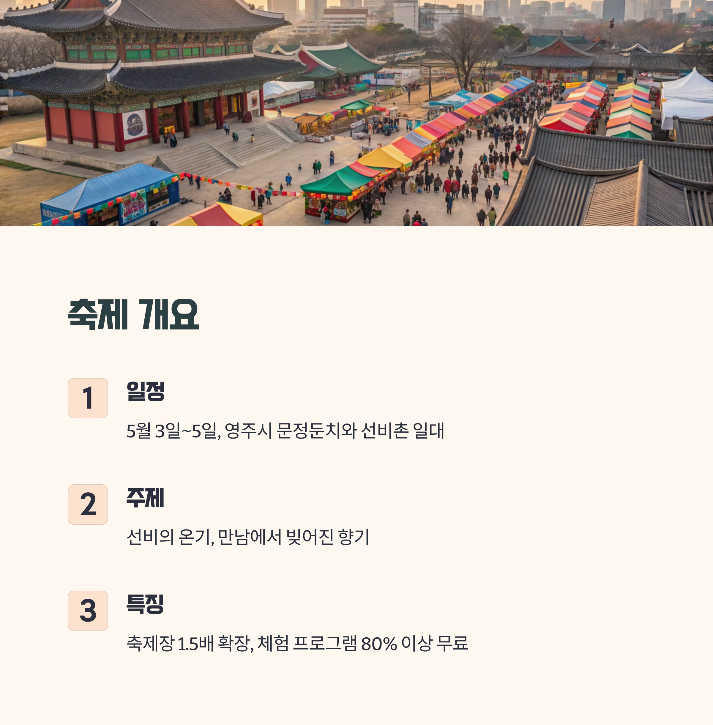아래에 일정, 체험, 꿀팁까지 정리해봤으니, 올해 5월 첫 주말은 영주에서 느긋하게 보내보세요 :)