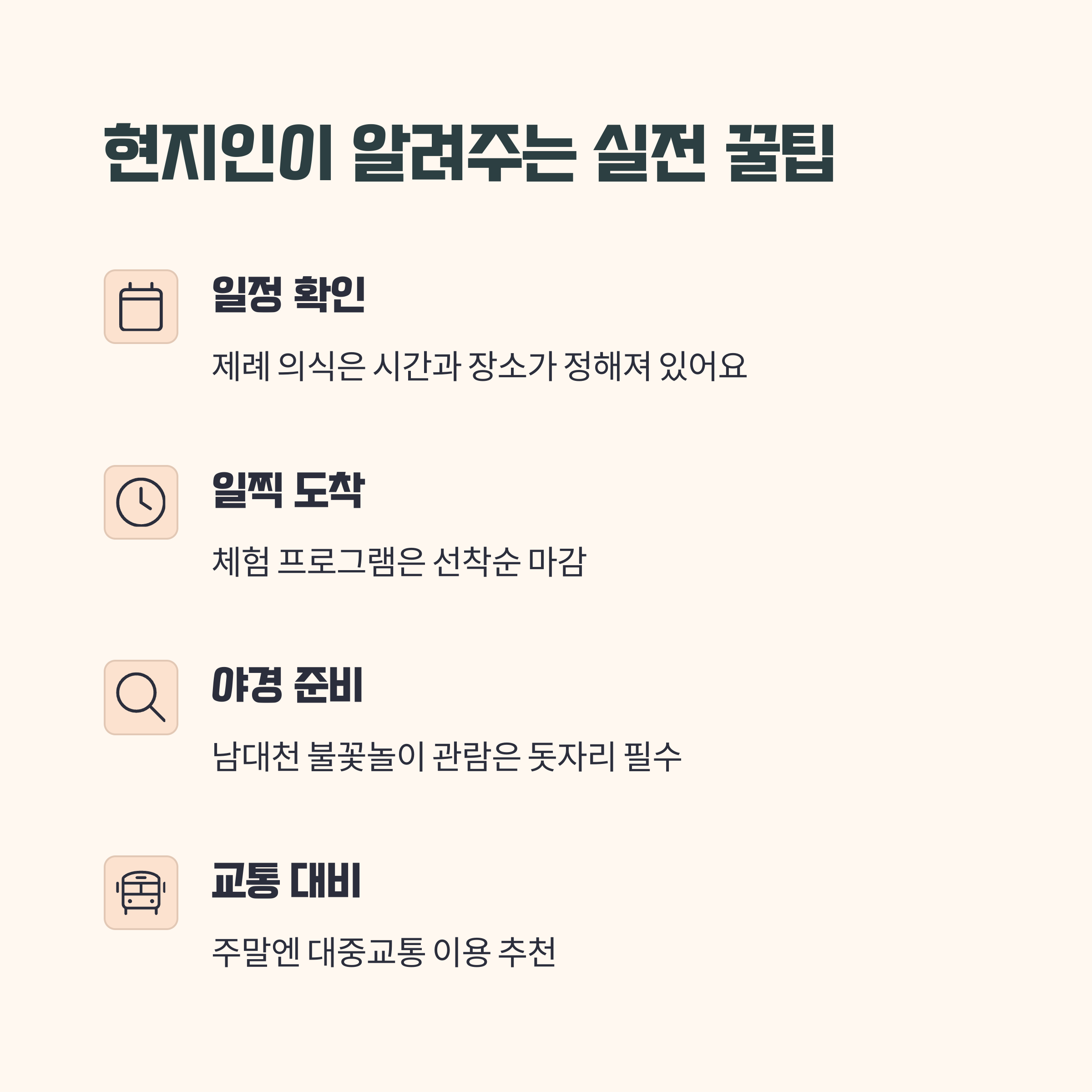 여행은 준비하는 순간부터 시작되니까요. 좋은 추억 많이 담아가시고, 다녀오신 분들은 댓글로 여러분만의 단오제 이야기도 꼭 들려주세요!