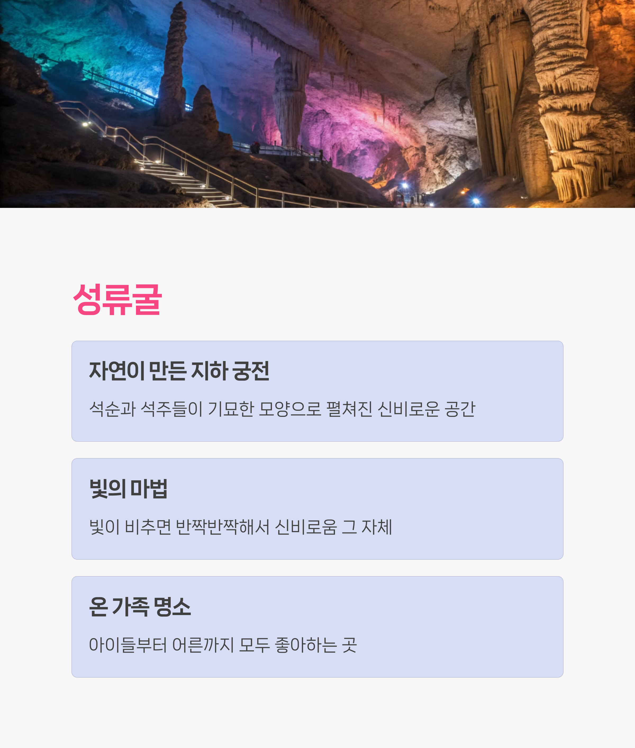 성류굴은 울진에서도 꽤 독특한 스팟이에요.