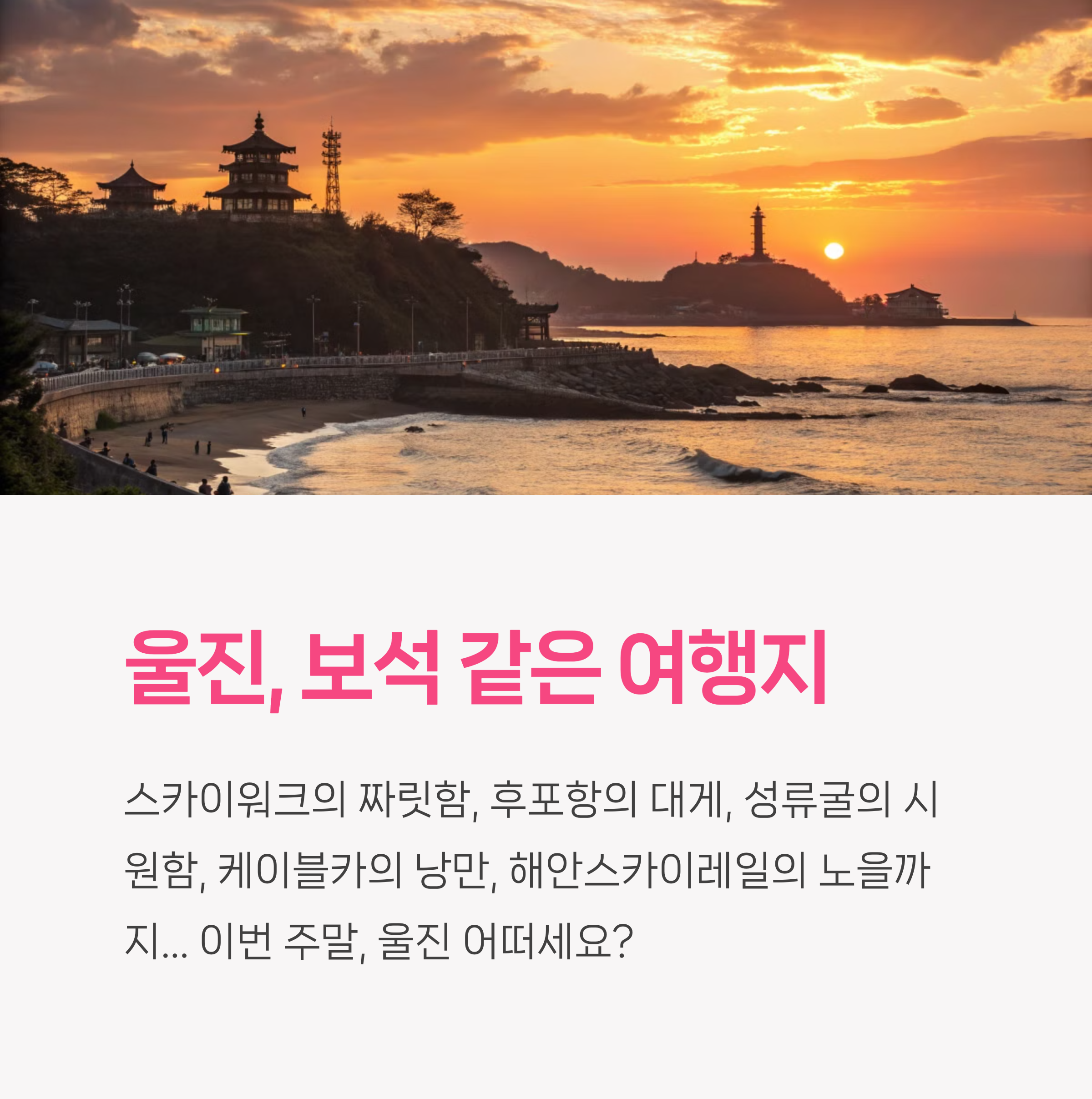 이번엔 제가 직접 다녀온 느낌으로, 울진에서 진짜진짜 추천하는 BEST 5 장소를 소개해보려 해요.