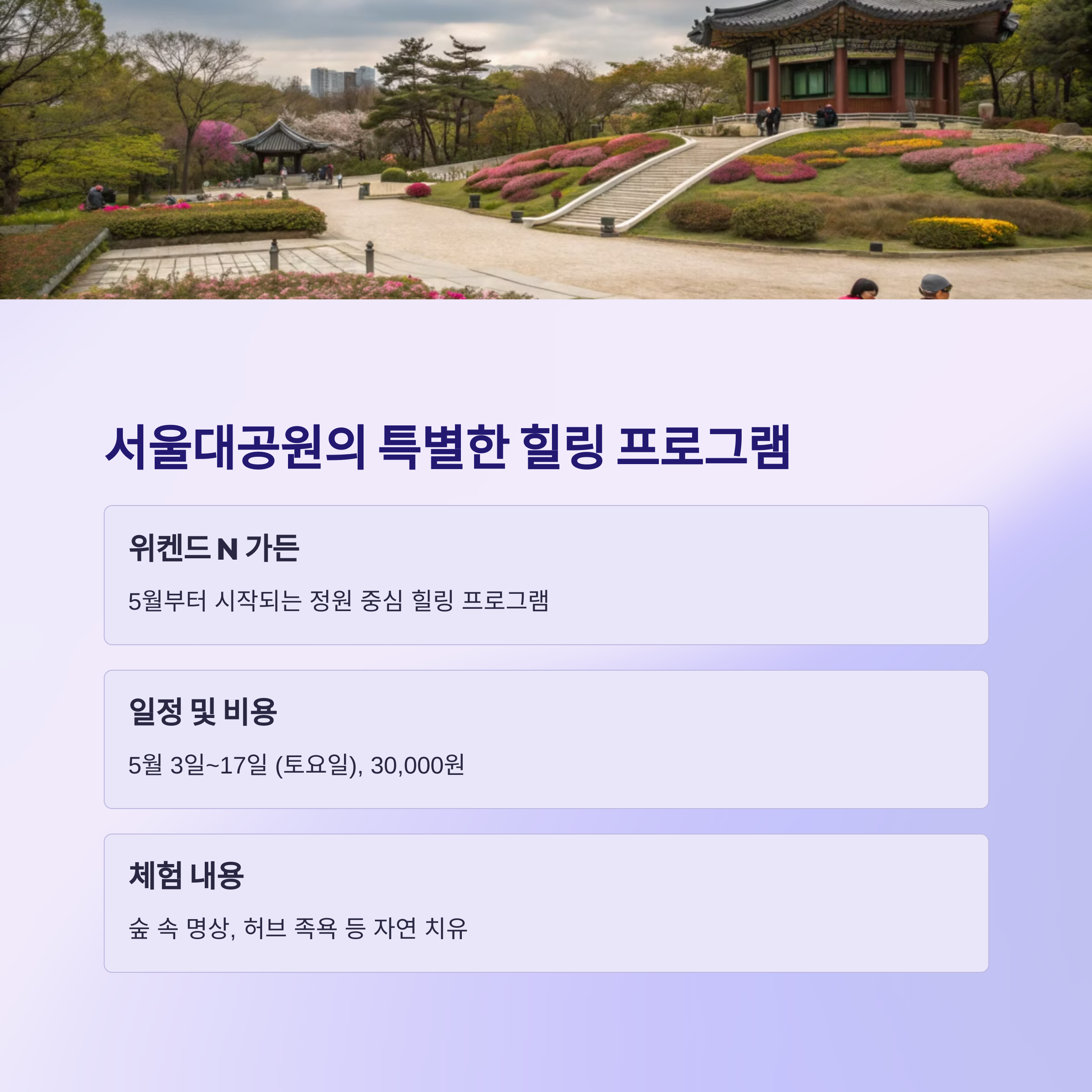 5월이면 꽃피는 계절이죠. 서울대공원은 2025년 5월부터 '위켄드 N 가든'이라는 정원 중심 힐링 프로그램을 진행합니다.