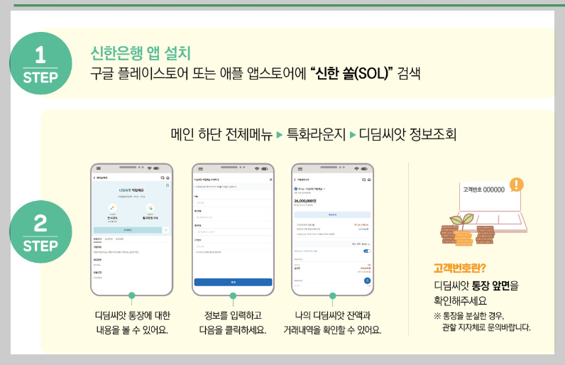 디딤씨앗통장 이용자들은 이제 신한은행의 모바일 앱 '쏠(SOL)'을 통해 자신의 적립금 및 매칭금 상태를 간편하게 조회할 수 있습니다. 아래는 정보조회 절차입니다.