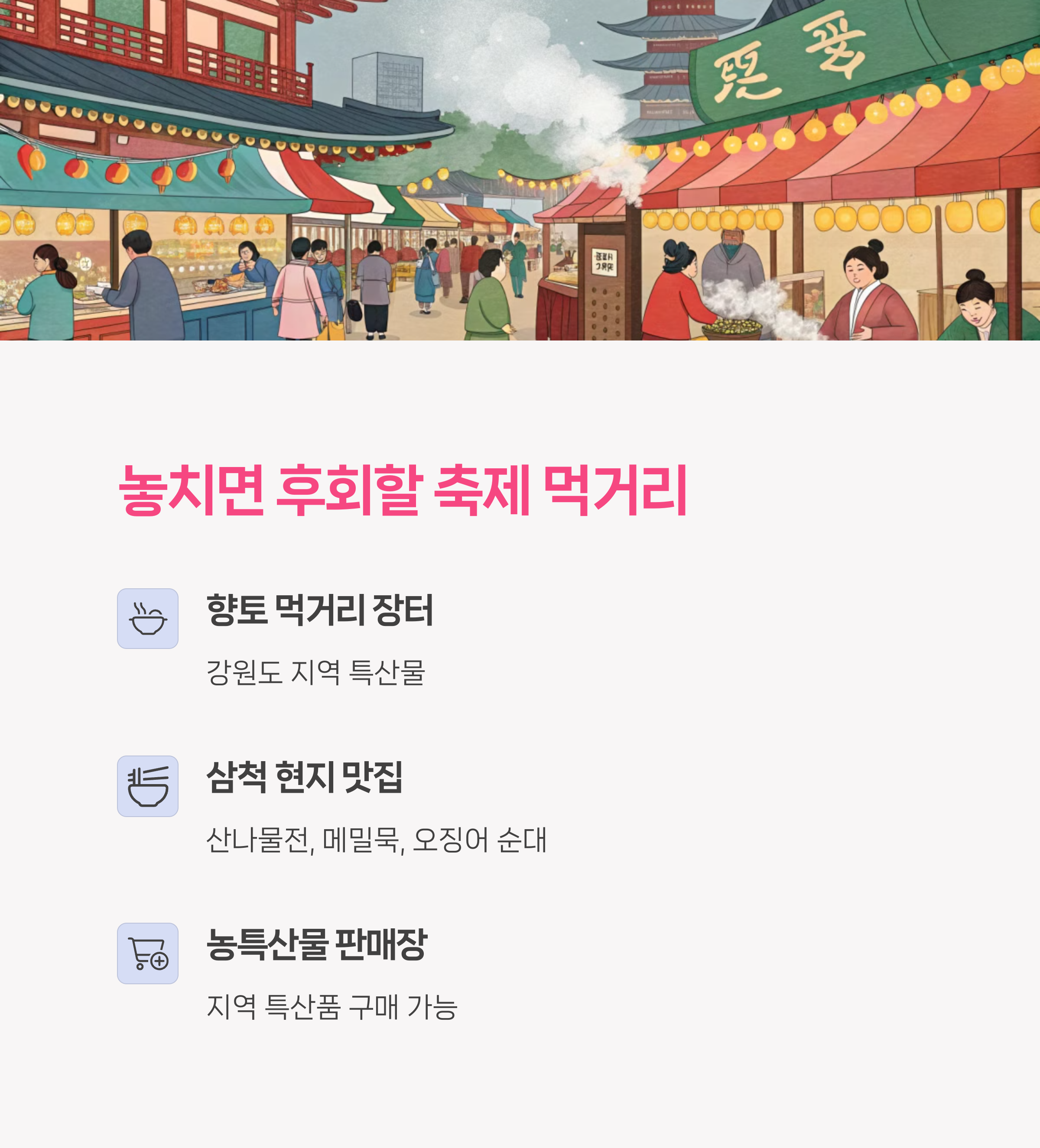 삼척에서만 먹을 수 있는 현지 맛집들 느낌 팍 나는 부스들이 딱딱!