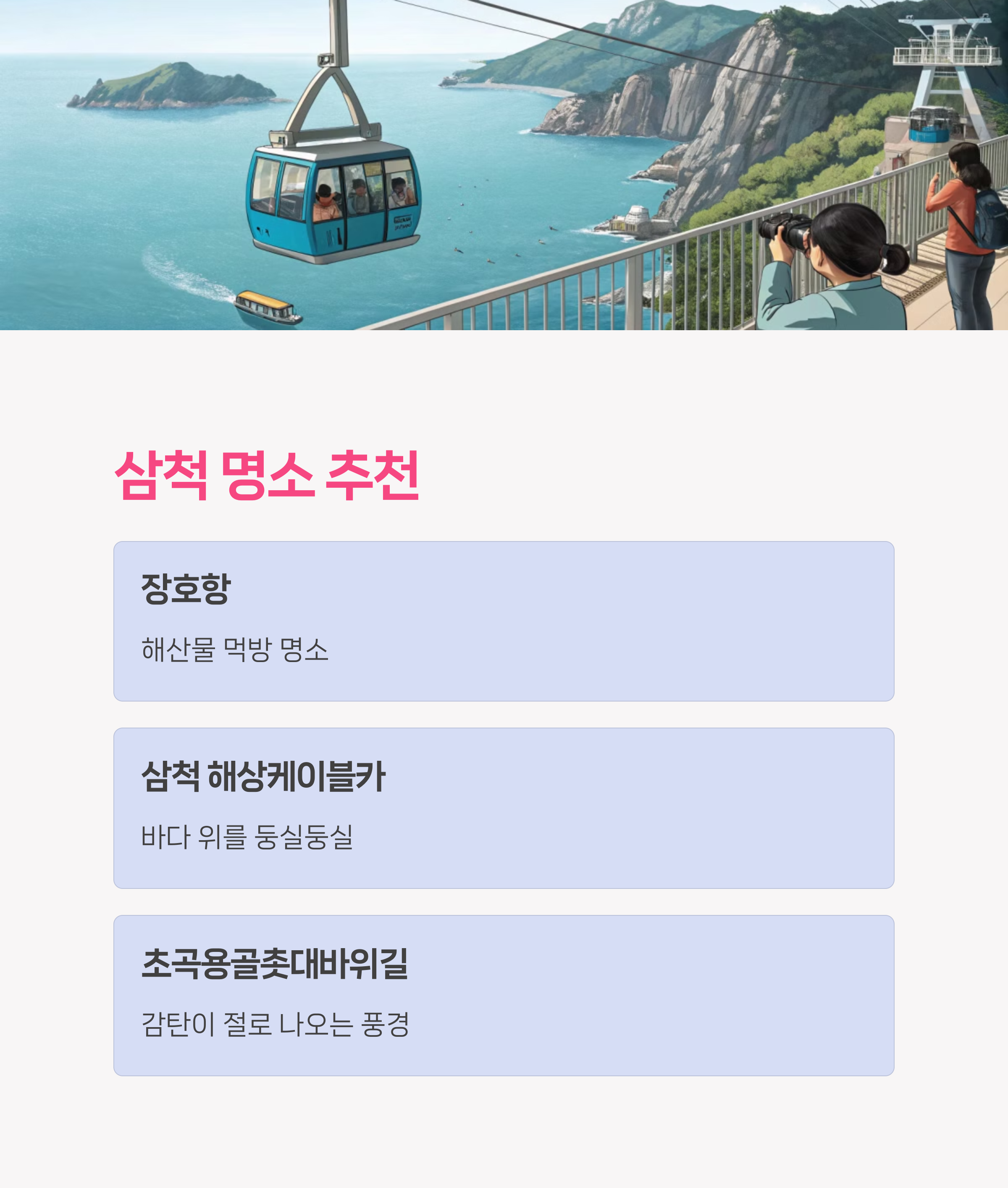 삼척의 숨은 관광지들까지 쭉~ 소개해볼게요!