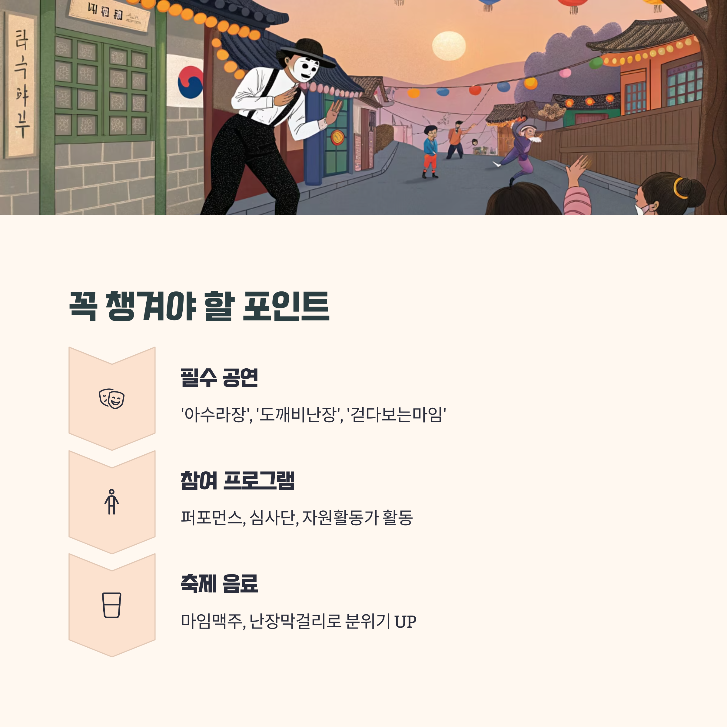 | 축제 음료 | ‘마임맥주’, ‘난장막걸리’ 현장 한정 판매 |