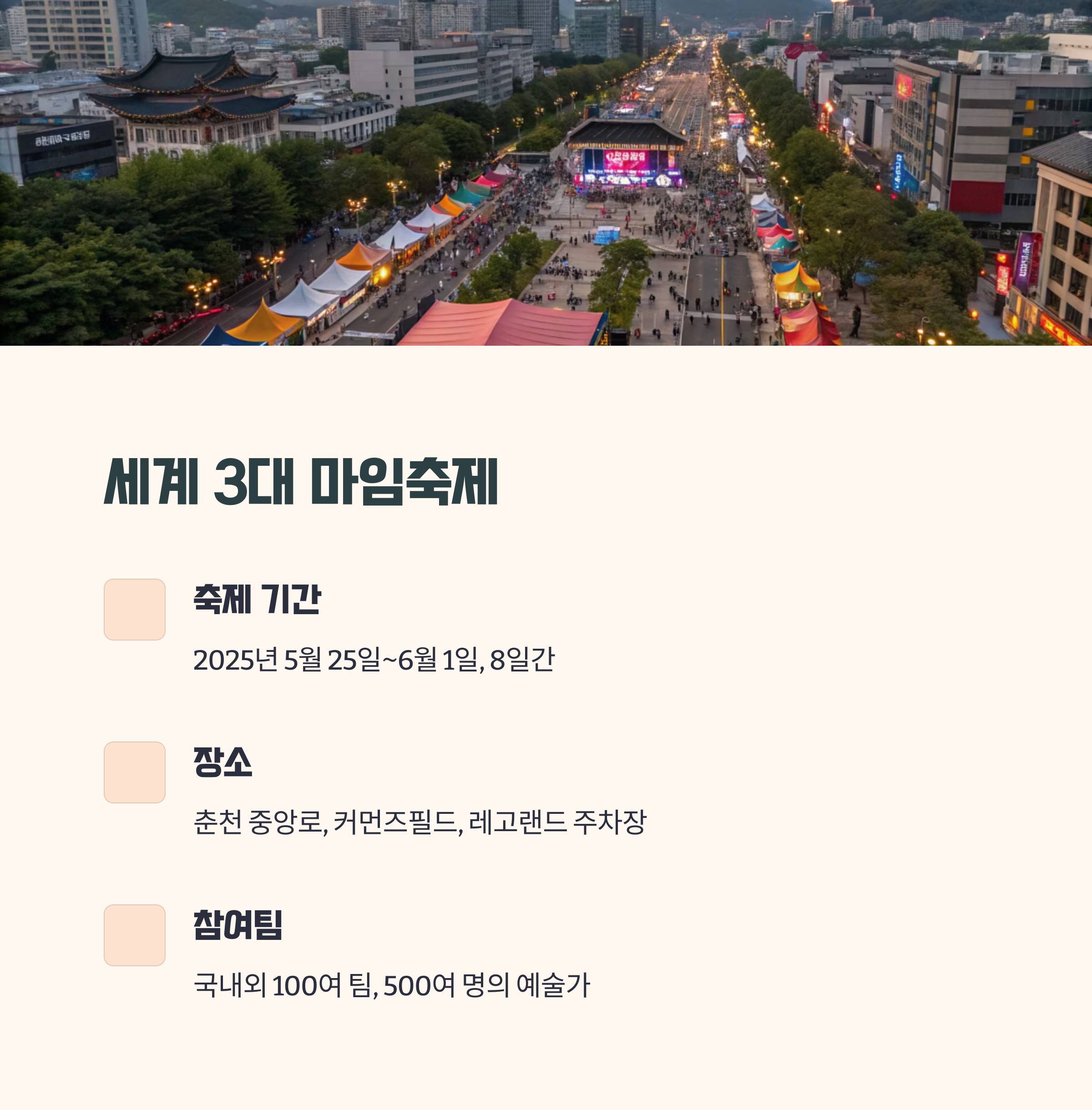 춘천이라는 도시가 통째로 무대가 되는 이 축제, 여러분도 꼭 직접 느껴보시길 바래요.