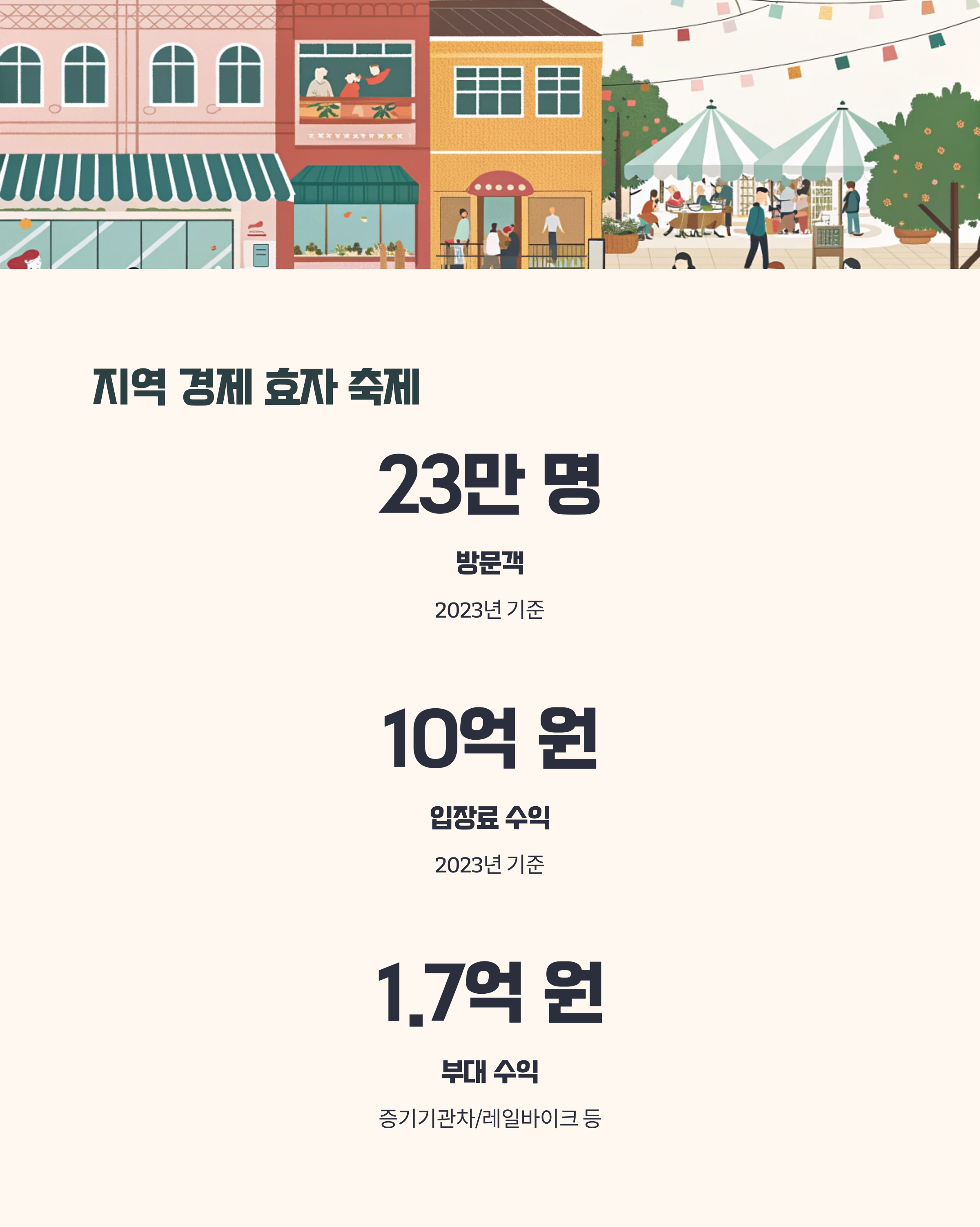 - 2023년 기준 약 23만 명 방문, 입장료 수익 10억 원