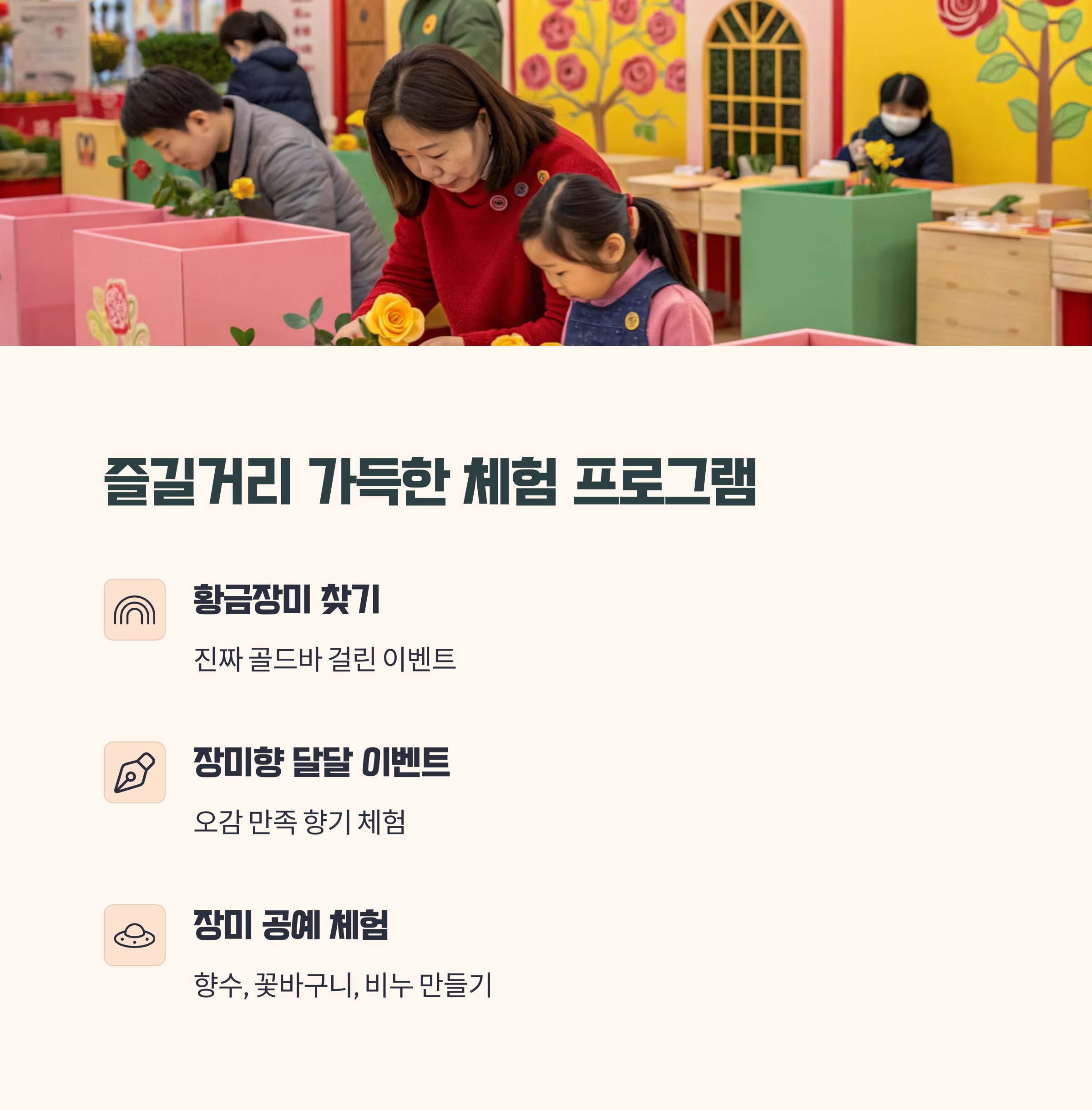 - 장미 공예 체험 부스: 향수, 꽃바구니, 비누까지 직접 만들기