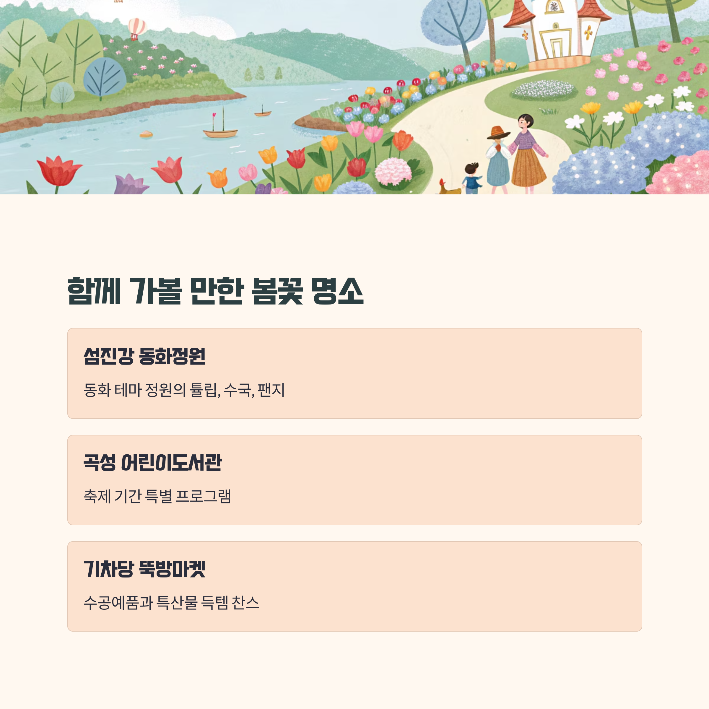 - 섬진강 동화정원 – 동화 테마 정원 속 튤립, 수국, 팬지까지 풍성!