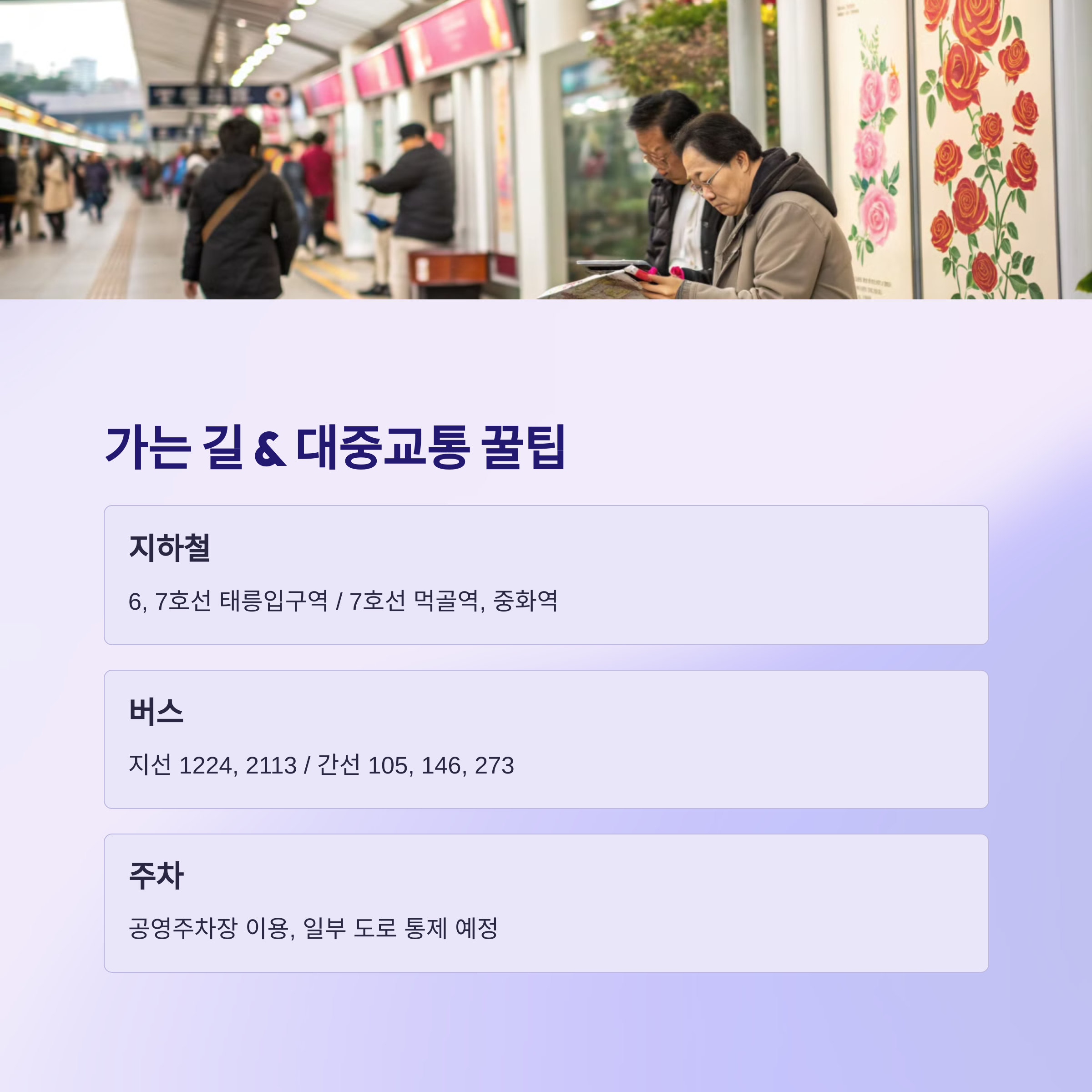 | 지하철 | 6, 7호선 태릉입구역 / 7호선 먹골역, 중화역 도보 5~15분 |