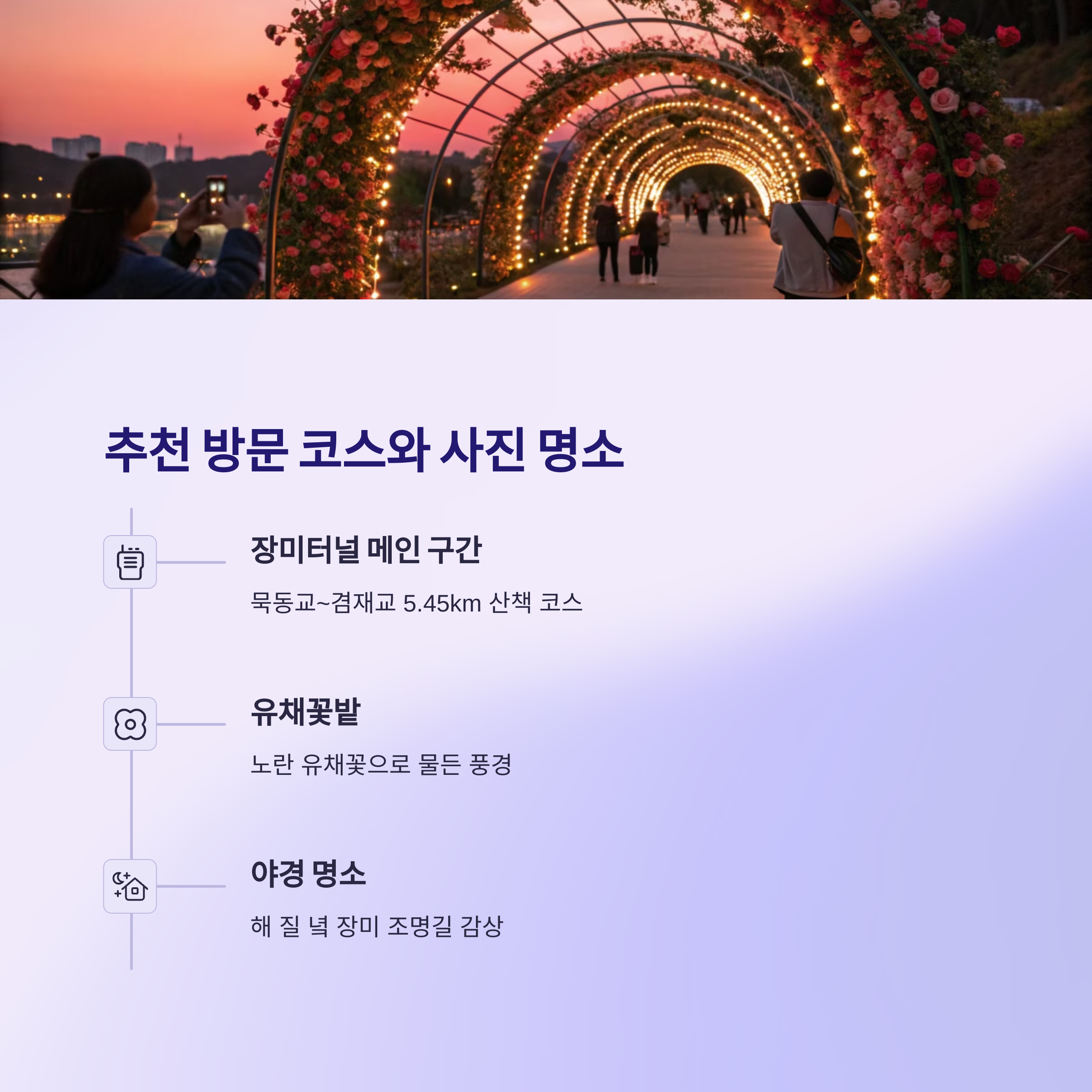 - 장미터널 메인 구간 (묵동교~겸재교): 5.45km 산책 코스