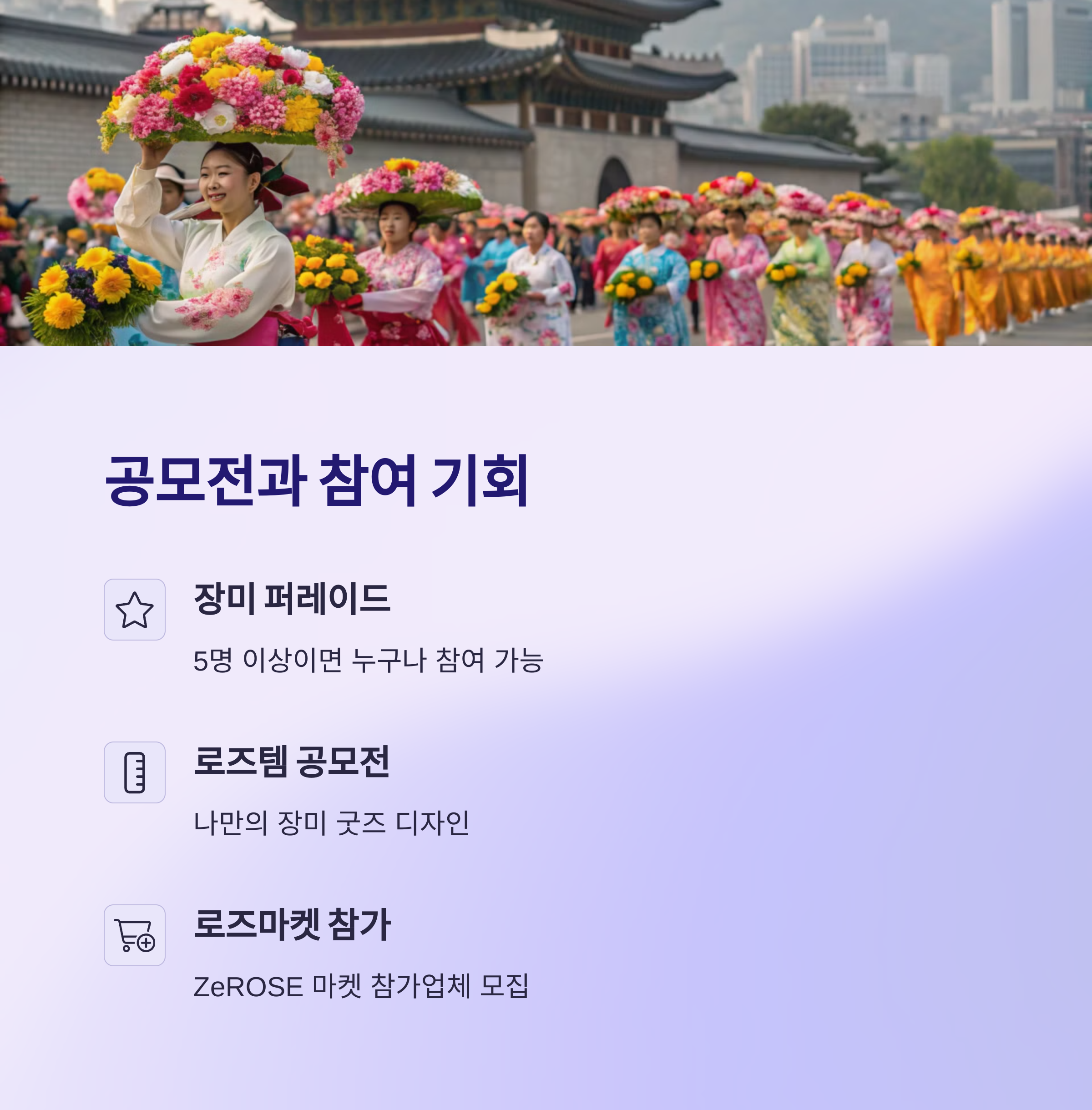 - 장미 퍼레이드 참가: 누구나 가능! 단체 환영