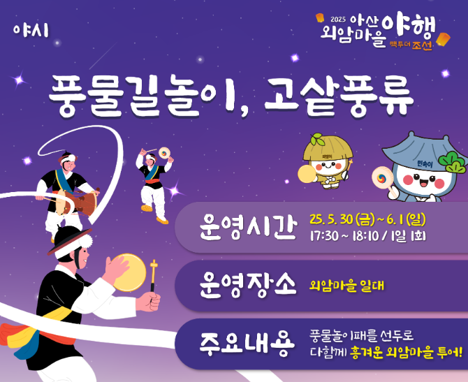 2025 아산 외암마을 야행은 오는 5월 30일(금)부터 6월 1일(일)까지 3일간 열리는 야간 문화 축제로,