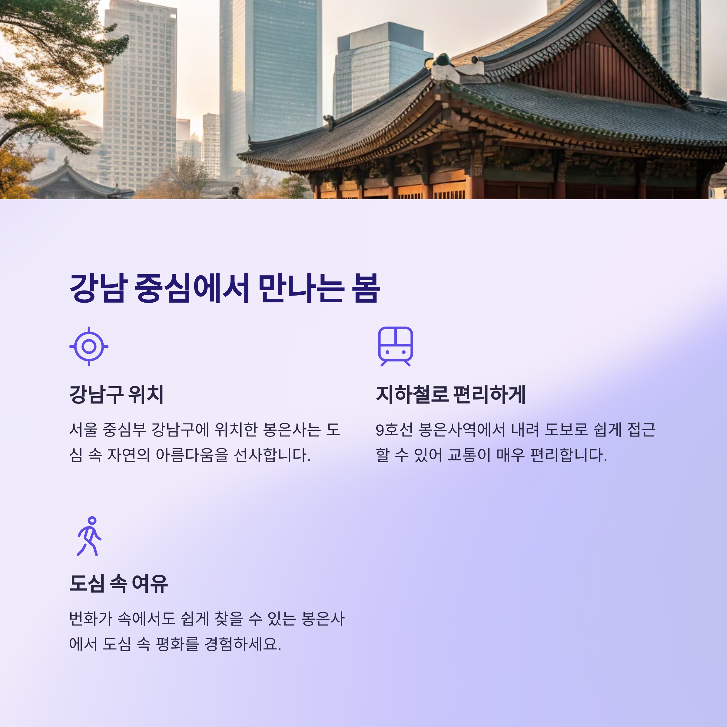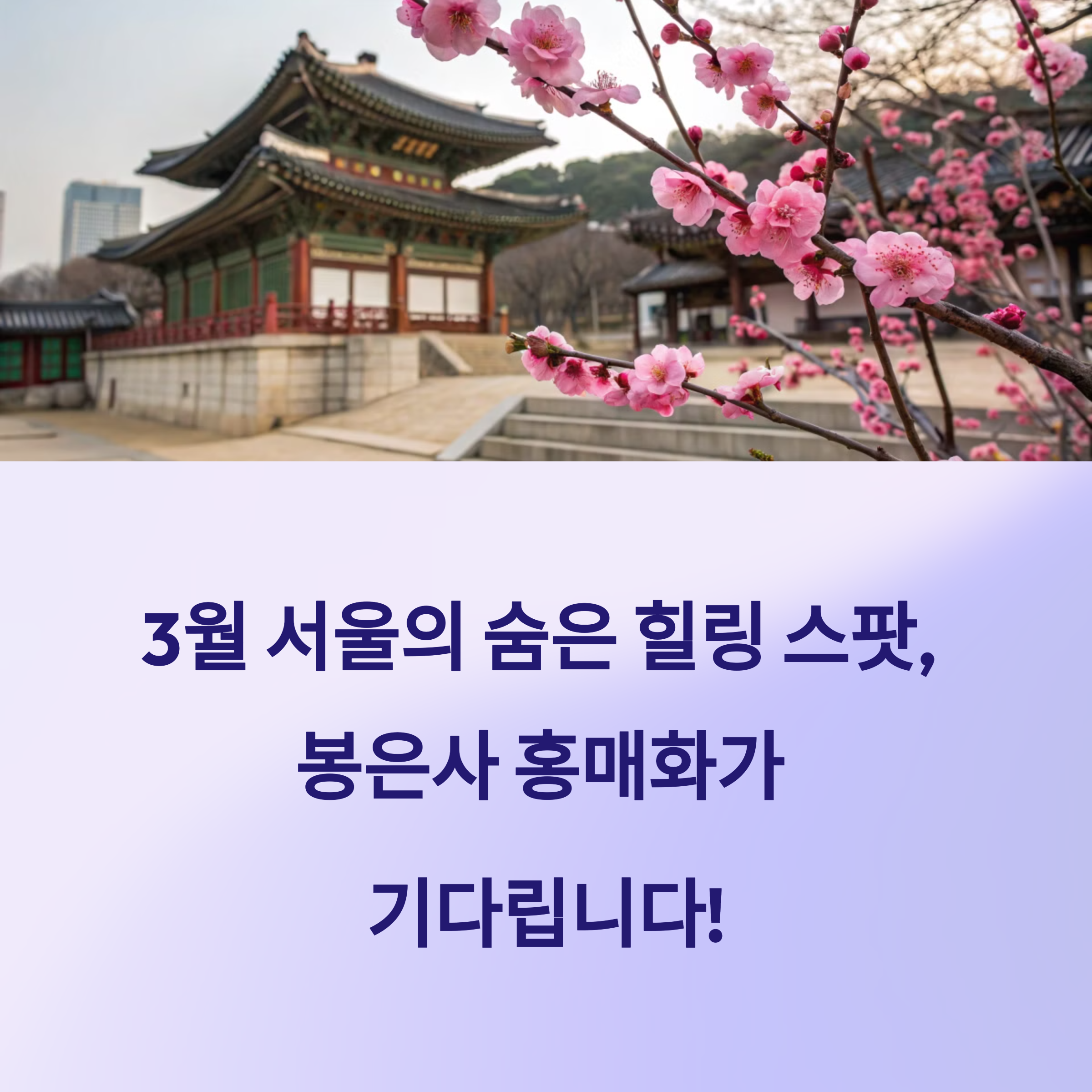 봉은사는 서울 강남구 삼성동에 위치한 조계종 사찰로, 9호선 봉은사역에서 도보로 5분이면 도착할 수 있는 엄청 접근성 좋은 곳이에요. 그런데 봉은사가 봄철에 핫한 이유? 바로 홍매화 덕분이죠! 🌺